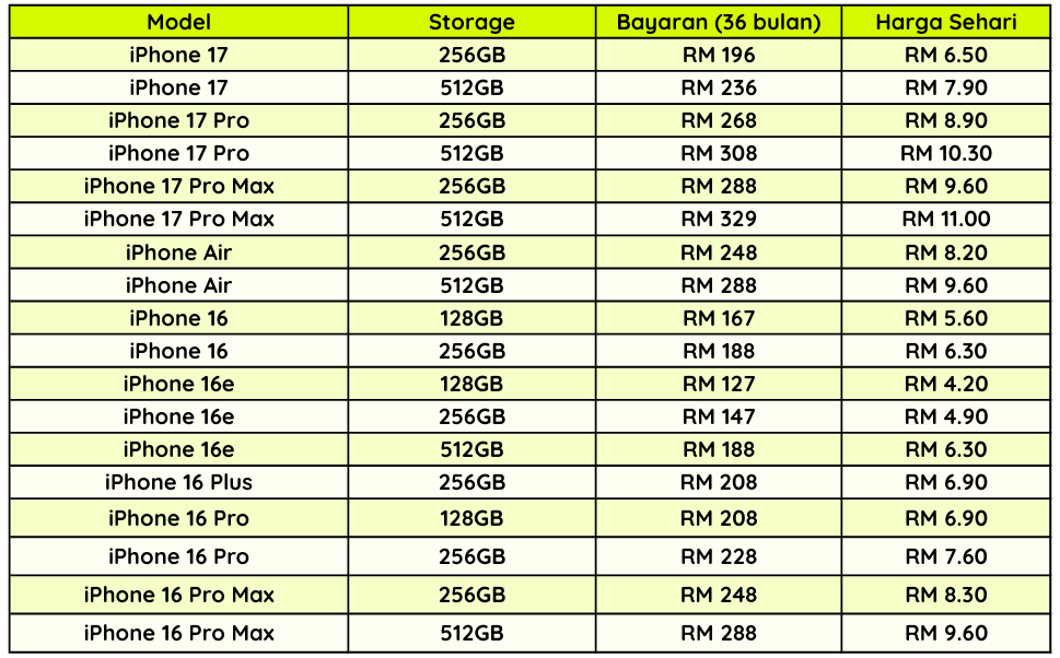 iPhone Baru (Ansuran sehingga 36 Bulan)
