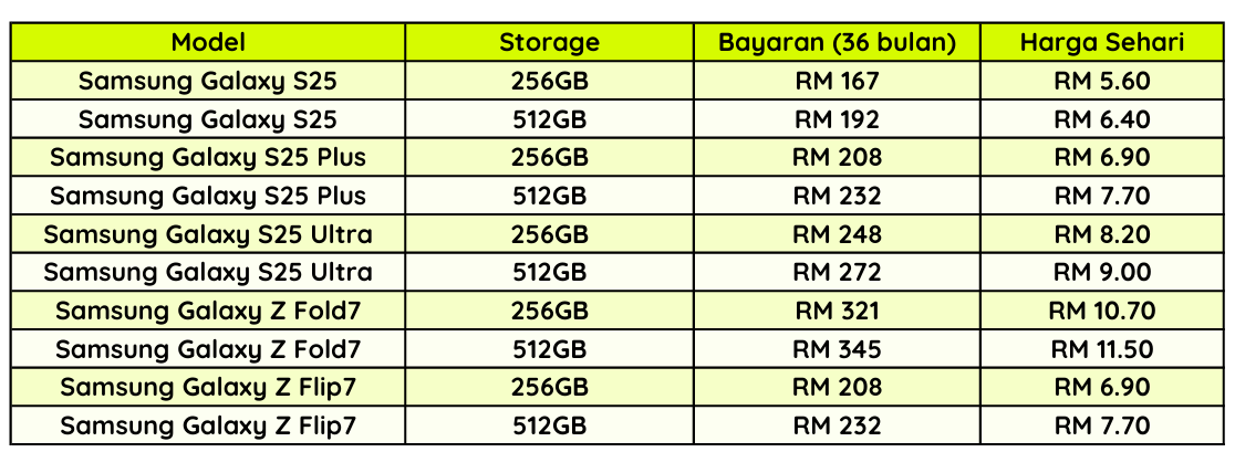 Samsung Galaxy Baru (Ansuran sehingga 36 Bulan)